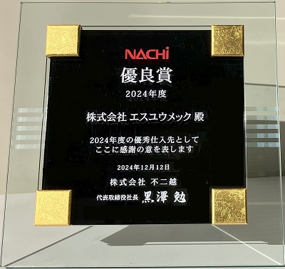 | 2024.12.13 | 株式会社不二越様より 「2024年度 仕入先 優良賞」を受賞致しました! 今後も受賞し続けられるよう、より一層努力して参ります。 ![]() |